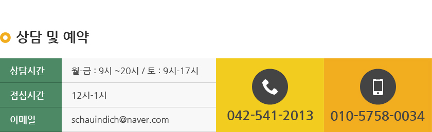 대표전화: 042-541-2013 / 010-5758-0034 | 개인정보책임관리자: 강은주 | 이메일: schauindich@naver.com